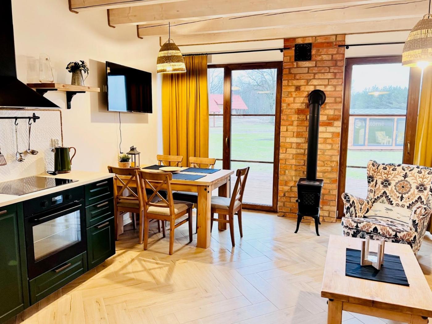 Dom z 2 sypialniami. This holiday homes standout feature is the fireplace. The holiday home has 2 bedrooms, 2 bathrooms and a kitchenette. Meals can be prepared in the well-fitted kitchenette, which is fitted with a refrigerator, a dishwasher and an oven. This holiday home features a washing machine, a barbecue, a flat-screen TV and a terrace. The unit has 3 beds. Dom wakacyjny - 6 osobowy. Powierzchnia pokoju ok.: 67 mkw.