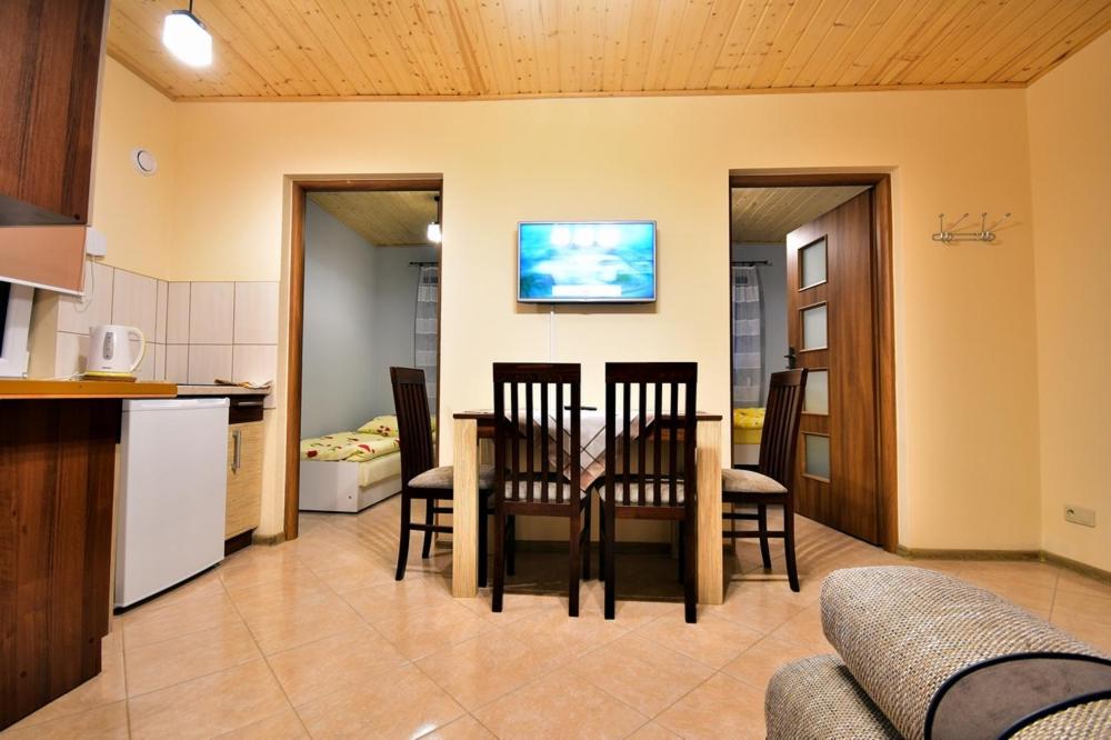 Apartament z 2 sypialniami. This apartment offers a private pool. This apartment comprises 1 living room, 2 separate bedrooms and 1 bathroom with a shower. Guests will find a stovetop, a refrigerator, kitchenware and an electric kettle in the well-fitted kitchen. The apartment also provides guests with a barbecue. Featuring a terrace, this apartment also provides a washing machine, a seating area and a flat-screen TV with cable channels. The unit offers 4 beds. Apartament - 5 osobowy. Powierzchnia pokoju ok.: 35 mkw.