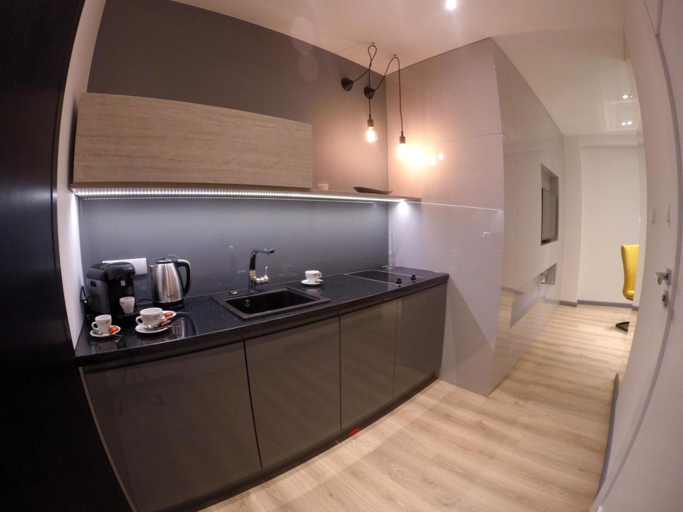 Apartament typu Deluxe. The apartment has 1 bedroom and 1 bathroom with a walk-in shower and free toiletries. In the fully equipped kitchenette, guests will find a stovetop, a refrigerator, a dishwasher and kitchenware. This apartment features a tea and coffee maker, flat-screen TV with cable channels, city views, as well as chocolate for guests. The unit has 1 bed. Apartament - 2 osobowy. Powierzchnia pokoju ok.: 23 mkw.