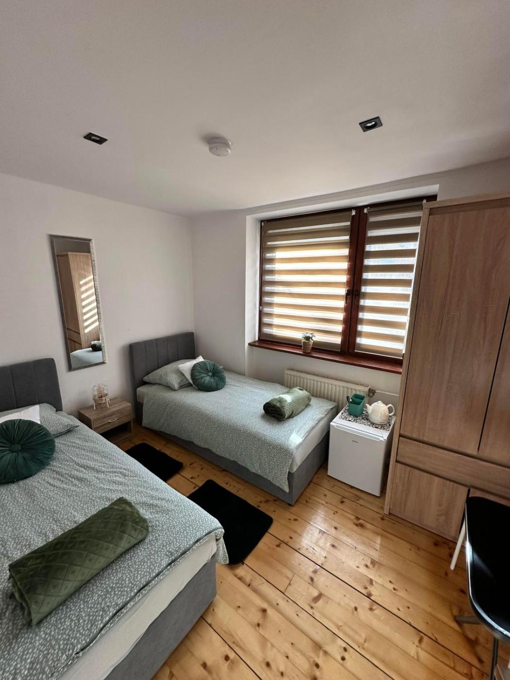 Mały pokój Dwuosobowy. The double room includes an external private bathroom fitted with a walk-in shower and a hairdryer. The double room features a tea and coffee maker, a wardrobe, parquet floors, a flat-screen TV with cable channels, as well as garden views. The unit has 2 beds. Pokój Dwuosobowy - 2 osobowy. Powierzchnia pokoju ok.: 14 mkw.