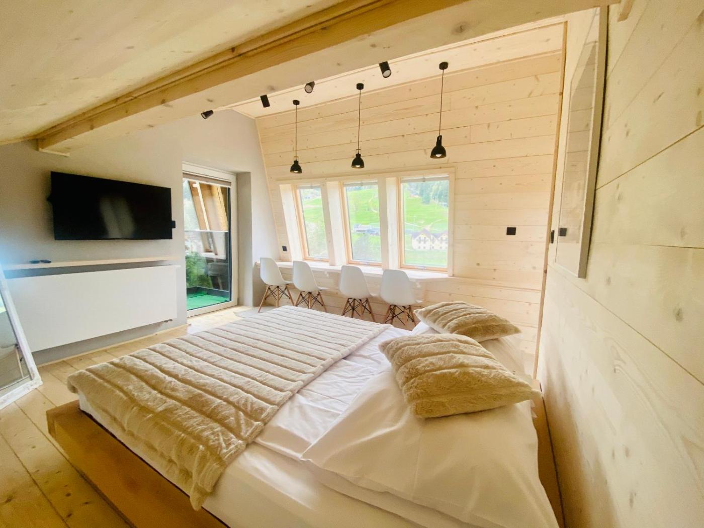 Apartament z widokiem na góry. The air-conditioned apartment features 1 bedroom and 1 bathroom with a shower and a hairdryer. Guests will find a stovetop, a refrigerator, a dishwasher and kitchenware in the kitchenette. The apartment also provides guests with a barbecue. Featuring a balcony with mountain views, this apartment also provides a tea and coffee maker and a flat-screen TV. The unit offers 1 bed and 1 futon. Apartament - 5 osobowy. Powierzchnia pokoju ok.: 35 mkw.