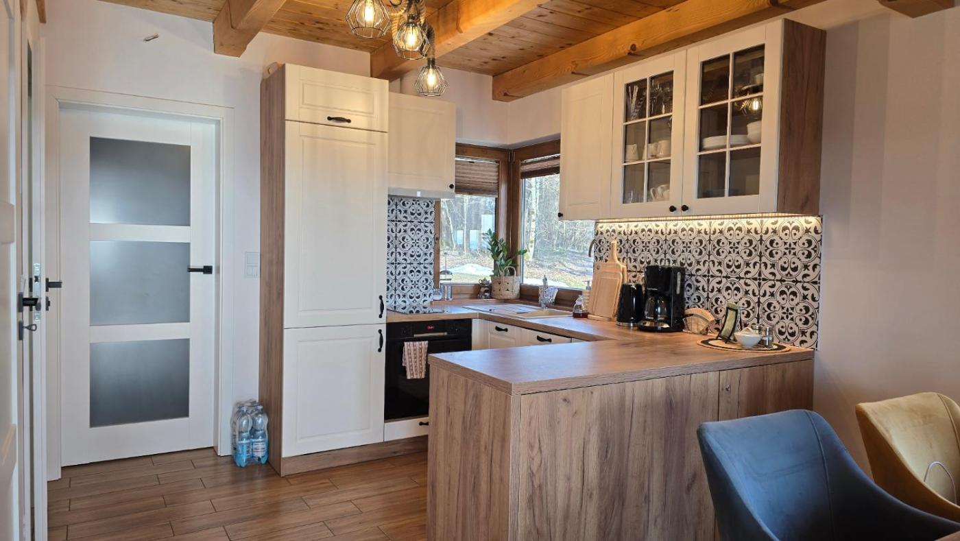 Domek z 2 sypialniami. The fireplace is the standout feature of this chalet. Boasting a private entrance, this chalet features 1 living room, 2 separate bedrooms and 1 bathroom with a shower and a hairdryer. Guests can make meals in the kitchen that features a stovetop, a refrigerator, a dishwasher and kitchenware. Featuring a terrace with garden views, this chalet also features a washing machine and a flat-screen TV. The unit has 4 beds. Domek - 5 osobowy. Powierzchnia pokoju ok.: 50 mkw.