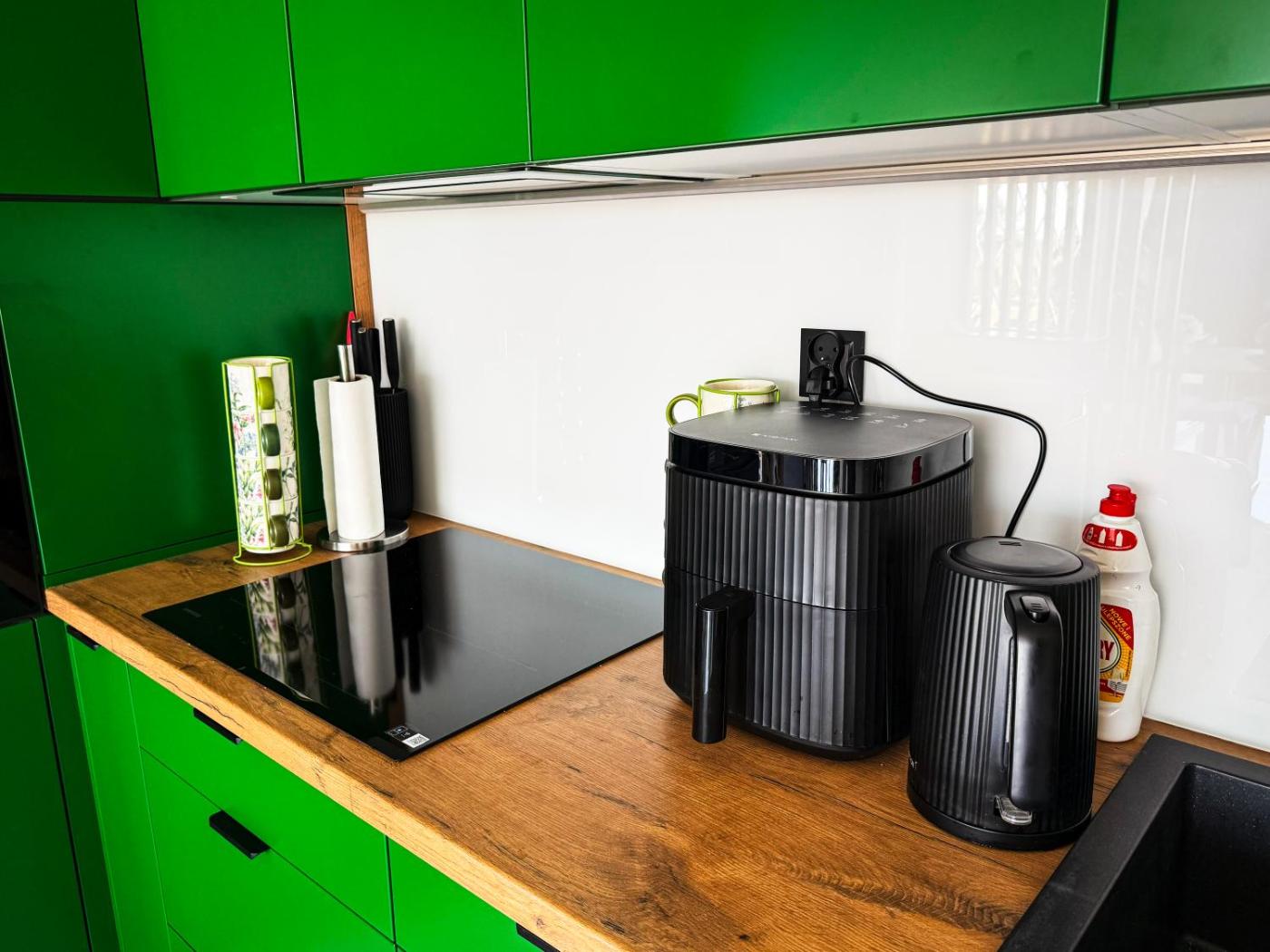 W niektórych opcjach zakwaterowania zapewniono także aneks kuchenny z lodówką, zmywarką i piekarnikiem.