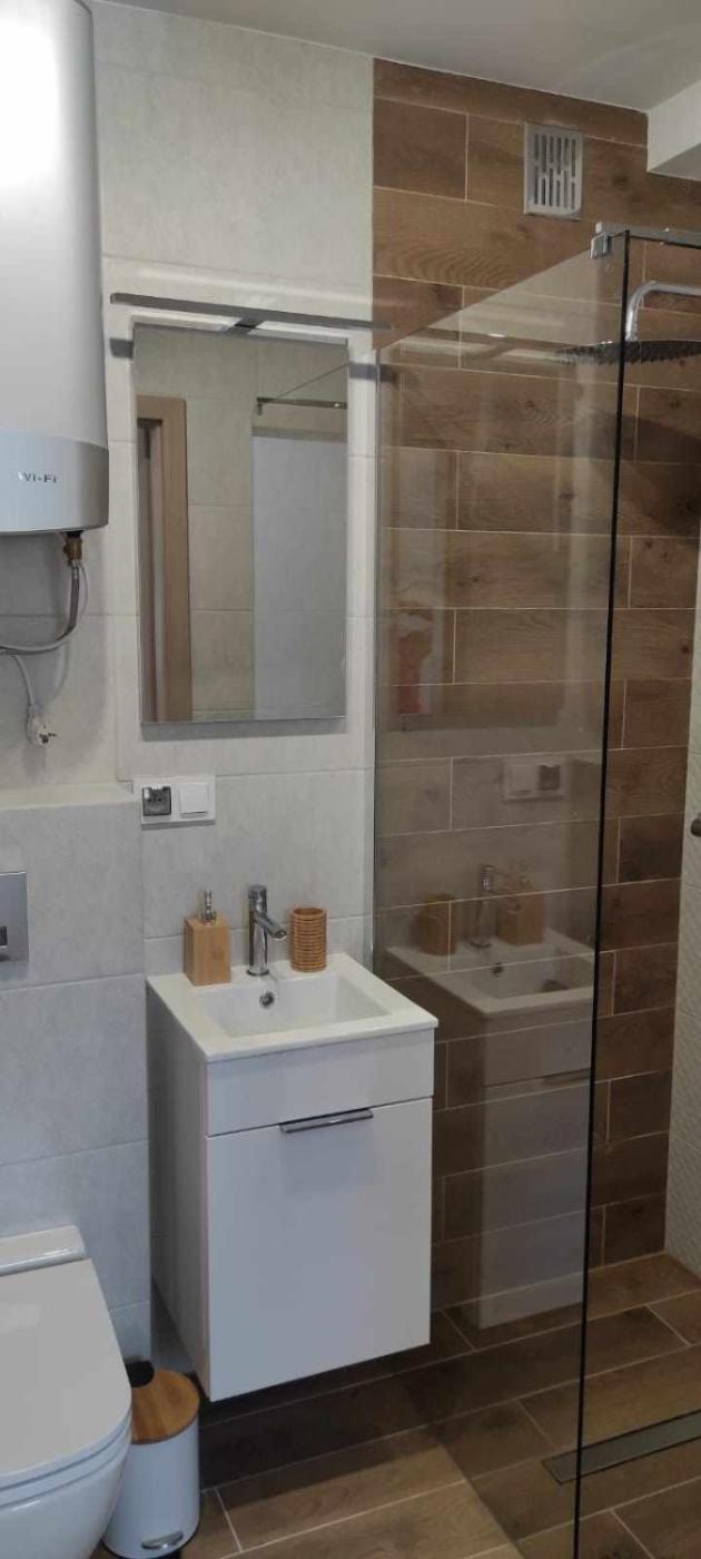 Apartament z 2 sypialniami. This apartment consists of 1 living room, 2 separate bedrooms and 1 bathroom with a shower. The apartments kitchenette is available for cooking and storing food. The apartment features a terrace. The unit offers 3 beds. Apartament - 5 osobowy. Powierzchnia pokoju ok.: 40 mkw.
