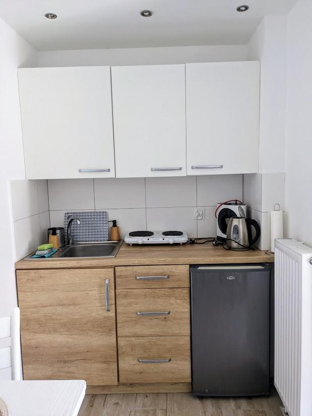 Dom z 1 sypialnią. This holiday home includes 1 living room, 1 separate bedroom and 1 bathroom with a shower and free toiletries. The holiday homes kitchenette, which features a refrigerator and kitchenware, is available for cooking and storing food. The holiday home has a tea and coffee maker, a seating area, a wardrobe as well as a terrace with garden views. The unit has 2 beds. Dom wakacyjny - 4 osobowy. Powierzchnia pokoju ok.: 23 mkw.