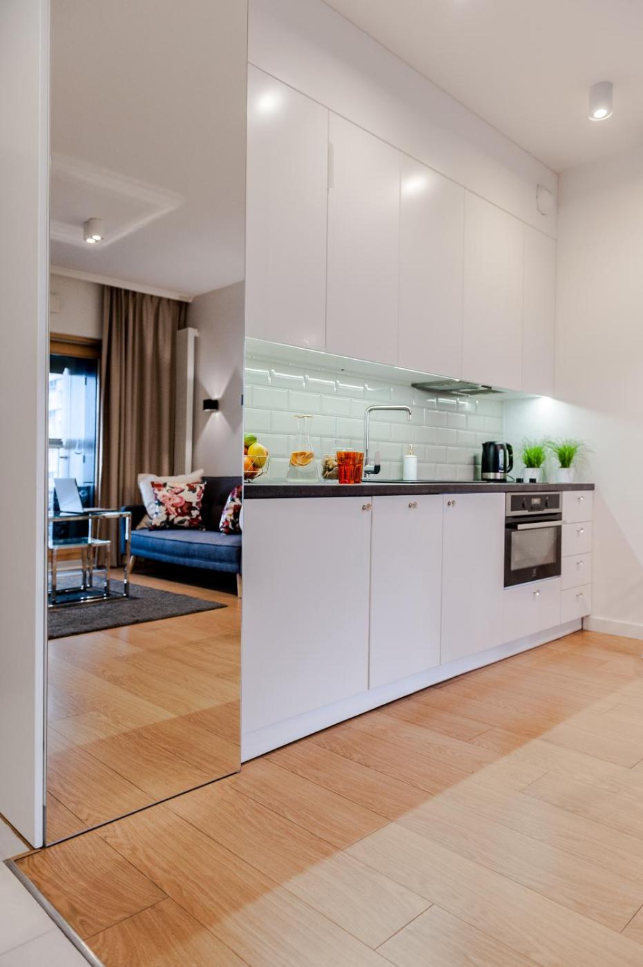 Oferta apartamentu obejmuje sypialnię (1), salon, kuchnię z pełnym wyposażeniem, w tym lodówką i ekspresem do kawy, a także łazienkę (1) z prysznicem oraz bezpłatnym zestawem kosmetyków. W apartamencie zapewniono ręczniki i pościel.